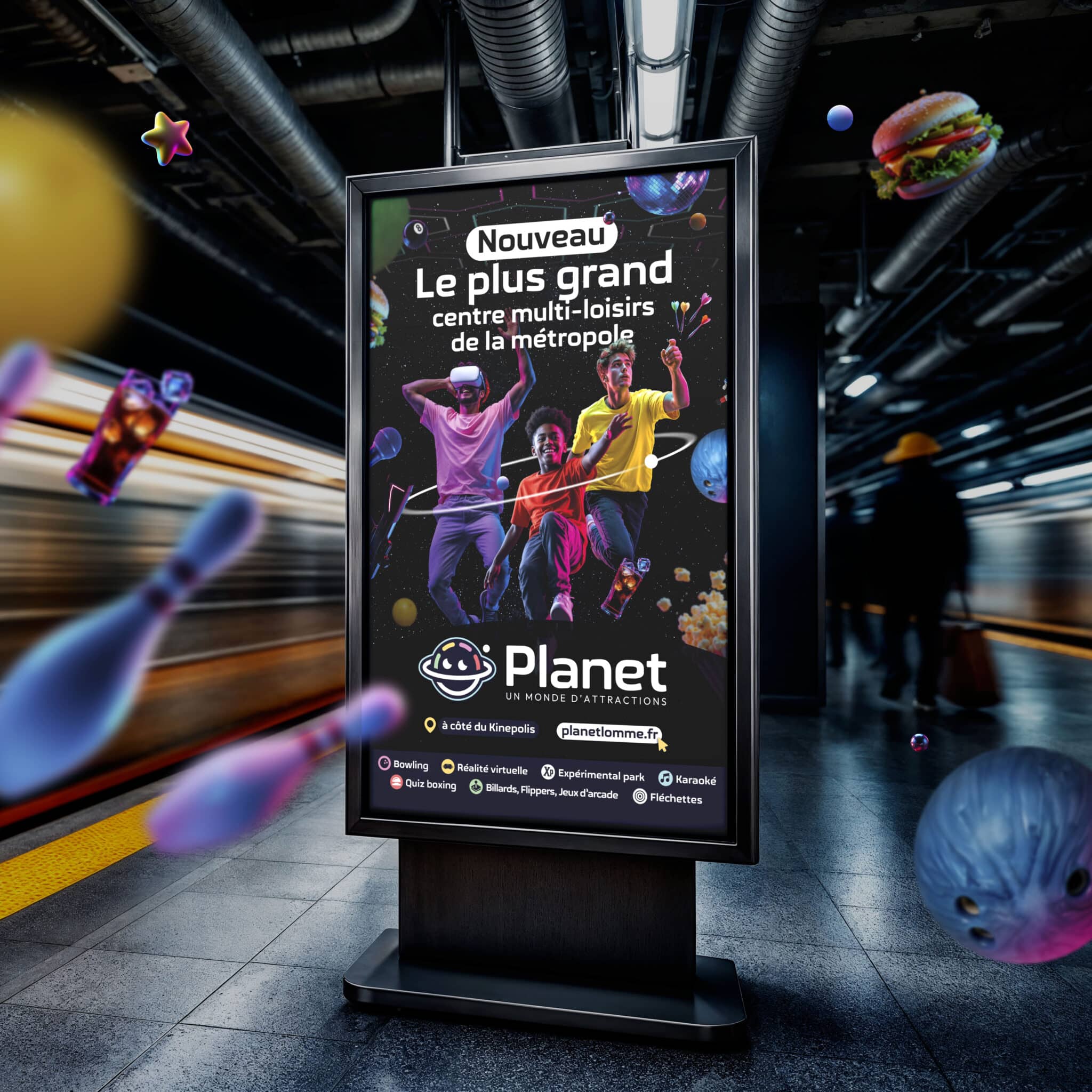 Historiquement connu sous le nom de Planet Bowling, cet établissement est une institution de la métropole lilloise depuis plus de 30 ans, s’imposant comme le plus grand bowling d’Europe avec ses 40 pistes. Sous l’impulsion de sa dirigeante Justine Becquart, l’enseigne a opéré une mutation profonde pour devenir « Planet : Un monde d’attractions », le plus grand centre multi-loisirs indoor de la région. En intégrant simultanément six nouvelles activités telles que la réalité virtuelle, le karaoké, le Quiz Boxing ou encore l’Experimental Park, Planet se positionne désormais comme un parc d’attractions complet où le plaisir est omniprésent.